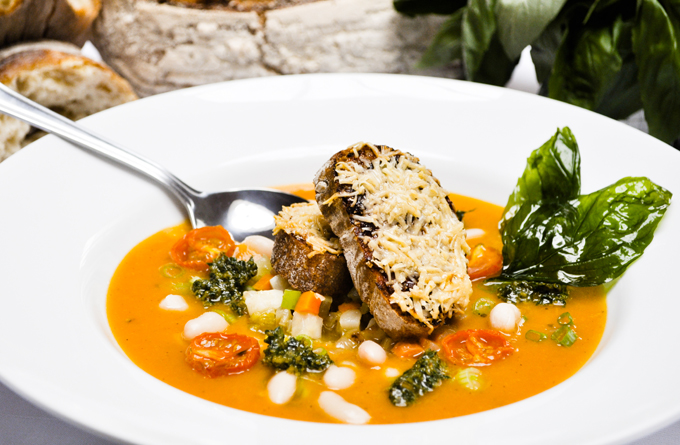 White Bean, Root Vegetable & Pesto Soup Recipe